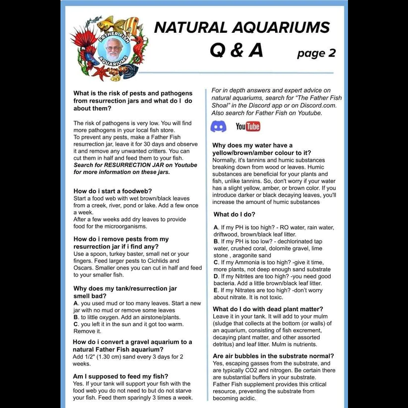 Here you will find some of the most common questions that are asked when setting up and keeping a Father Fish style deep substrate aquarium. This Q&A sheet was designed to help get fast answers to those questions you may have and either don't want to ask or have seen asked time and time again. For further information please send me an email or chat request here on the shop or join our Father Fish Shoal over on discord for expert help from all of the Father Fish Staff Team.