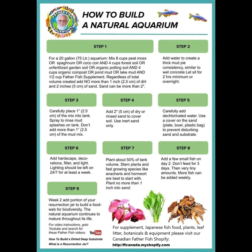 Here you will find the link to the instructions for setting up your deep substrate natural aquarium. These instructions were made by Father Fish and his team and have been proven to work. If you have any questions regarding these instructions feel free to chat, or email me about them. You can also join our Father Fish Shoal on discord to receive expert help from the Father Fish Team.