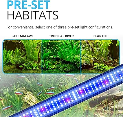 The Fluval Plant Spectrum LED 3.0 is an amazing light, currently we are currently running 2 of the 32W leds on our 55 gallon tank in the front of the lids. You will have to decide which length and wattage best suits your tank. These LEDs are controlled via app (FluvalSmart) you can either run them on auto mode or use pro mode and customize the timing and light intensities yourself. With pro mode you can control your pink, blue, cold white, pure white and warm white strength and duration all through bluetooth. The Fluval 3.0 is a set it and forget it light, if the power goes out your settings aren't lost, just open the app and connect to the LEDs and your light will turn on. Fluval's LEDs are on the pricy side for plant lights but the quality is on point.